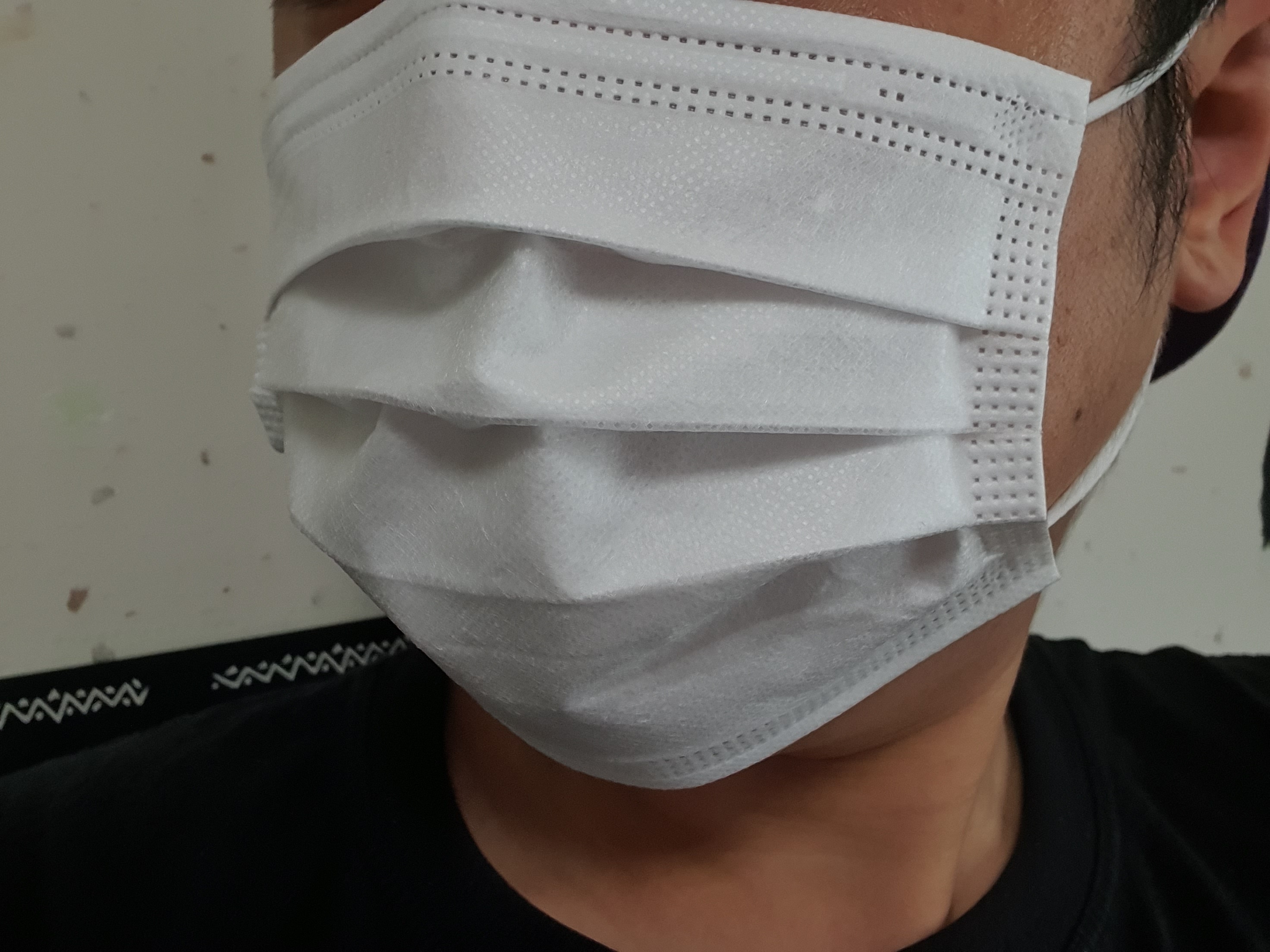 이럴 땐 마스크 끈 부분의 연결 부위를 보면 쉬운데 보통은 마스크 앞면 쪽으로 귀걸이 끈이 봉제되어 있지만 수입산은 뒷면에 봉제되어 있는 경우도 있다. 필자가 구입한 수입산 덴탈 마스크의 경우에도 얼굴과 닿는 뒷면에 귀걸이 끈이 연결되어있어 앞뒤 구분이 쉽지 않았다. 따라서 색상과 끈의 연결 부위만 가지고 앞뒤를 구분하기에는 어려움이 있다.