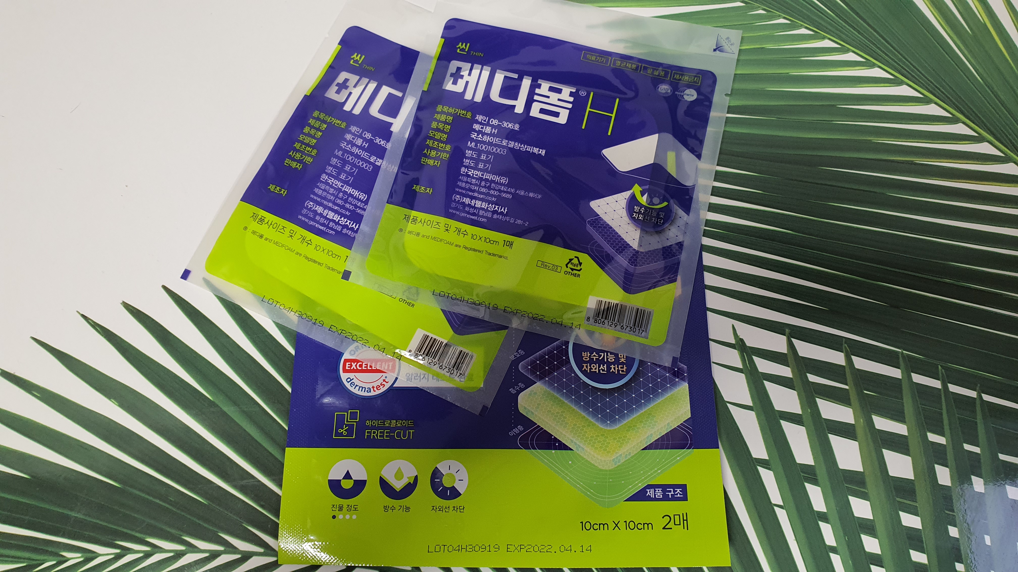 나중에 알아보니 메디폼도 종류가 여러 가지인 모양이다. 내가 구매한 건 메디폼 H 씬 THIN. 가격은 동네 일반 약국에서 7900원에 구매했다. 생각보다 비싸다.. 10cm x 10cm 사이즈 2매 구성이다.