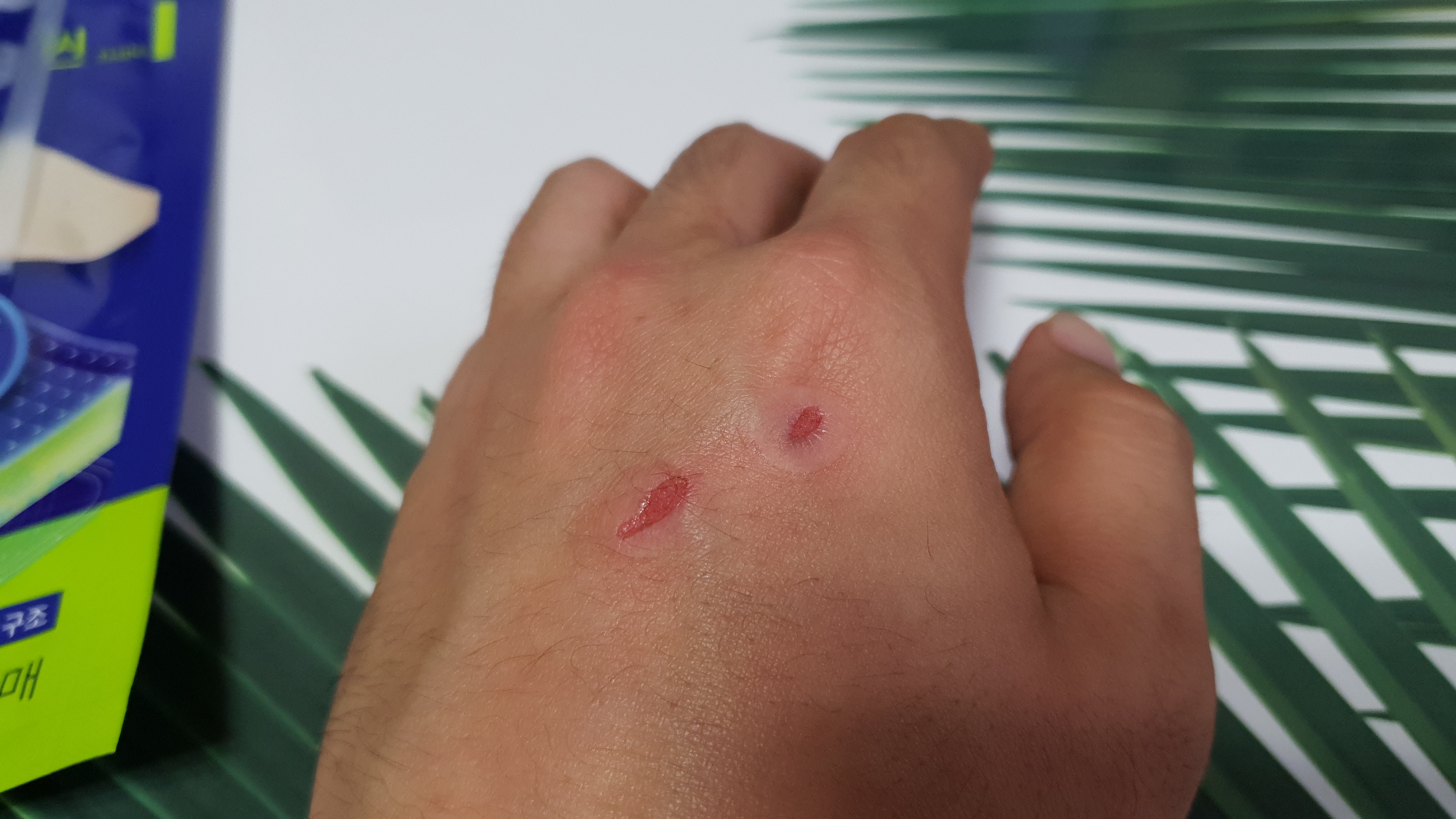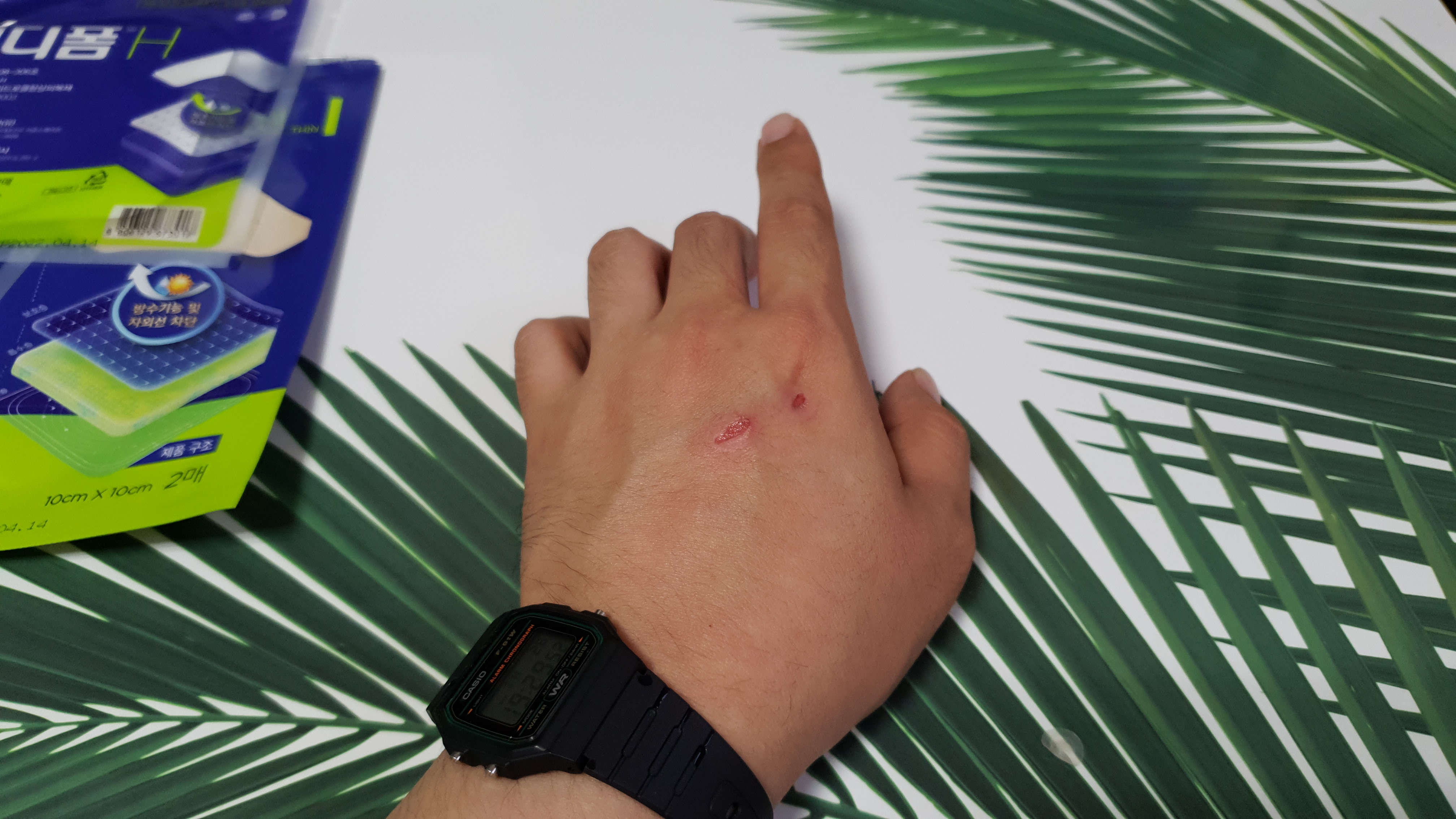 남자 손이지만 흉 지면 보기 싫어질 것 같아서 약국으로 가서 메디폼을 사 왔다.