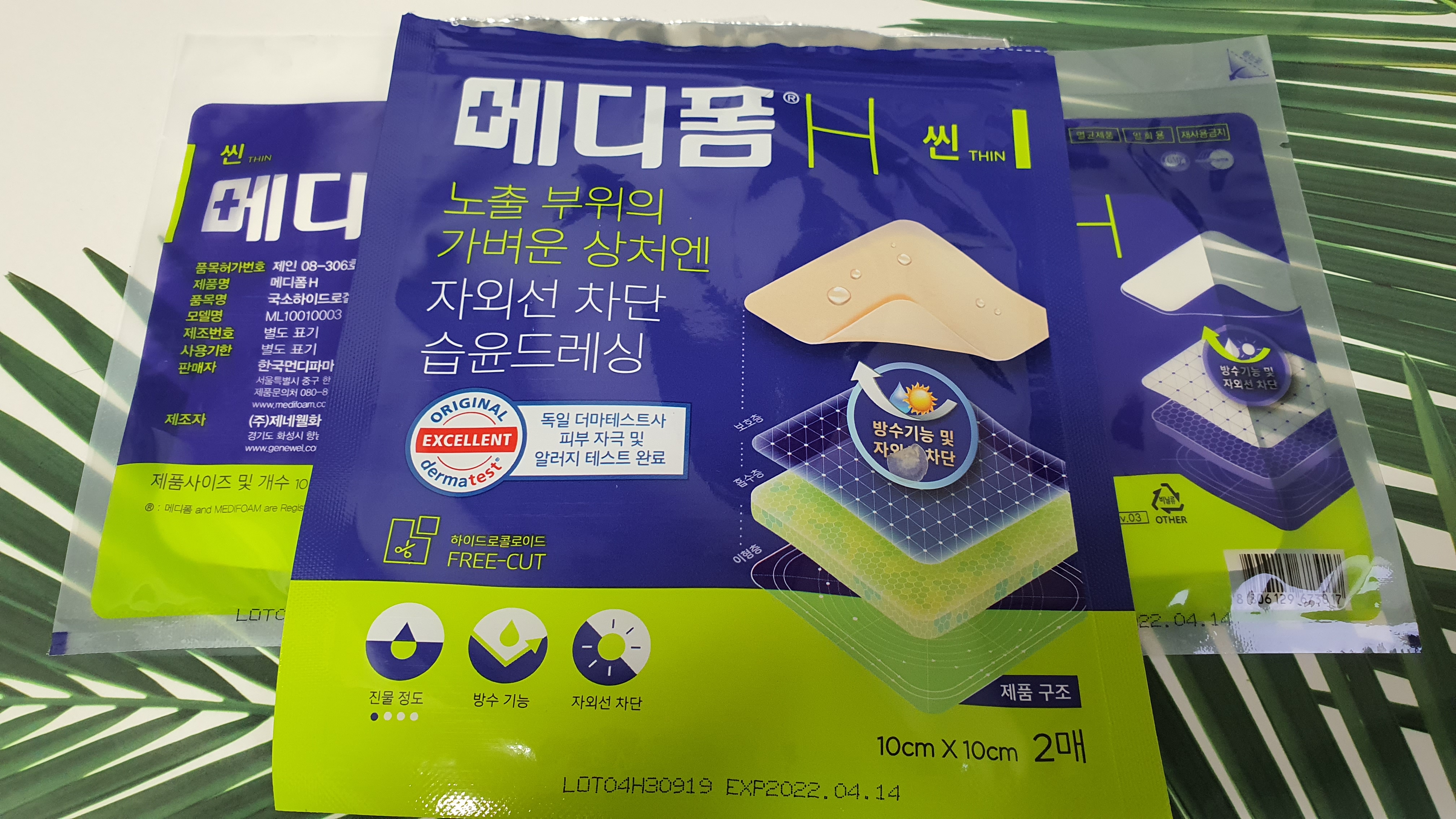 나중에 알아보니 메디폼도 종류가 여러 가지인 모양이다. 내가 구매한 건 메디폼 H 씬 THIN. 가격은 동네 일반 약국에서 7900원에 구매했다. 생각보다 비싸다.. 10cm x 10cm 사이즈 2매 구성이다.