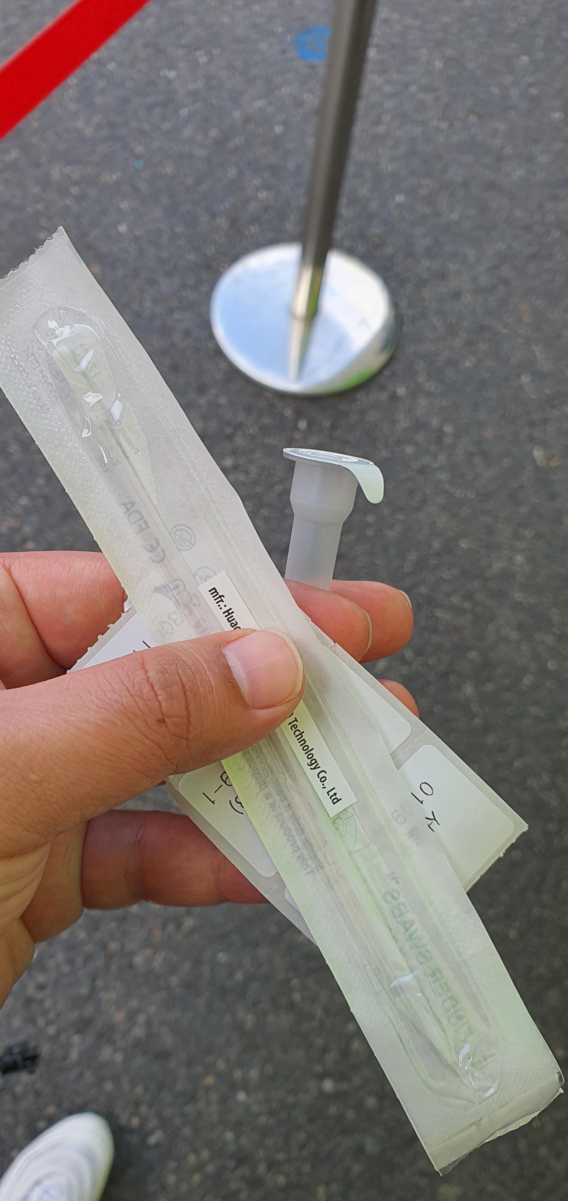 이를 바탕으로 휴대폰 번호가 적힌 라벨지와 검사받는 키트를 교부받아 검사원이 있는 장소로 차례차례 거리두기를 하면서 이동한다. 아침시간이라 그런 건지 대기가 길지 않았다. 검사 자체도 짧게 걸렸다.