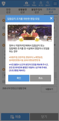 - 행정안전부에서 만든 '안전신문고' 앱 설치