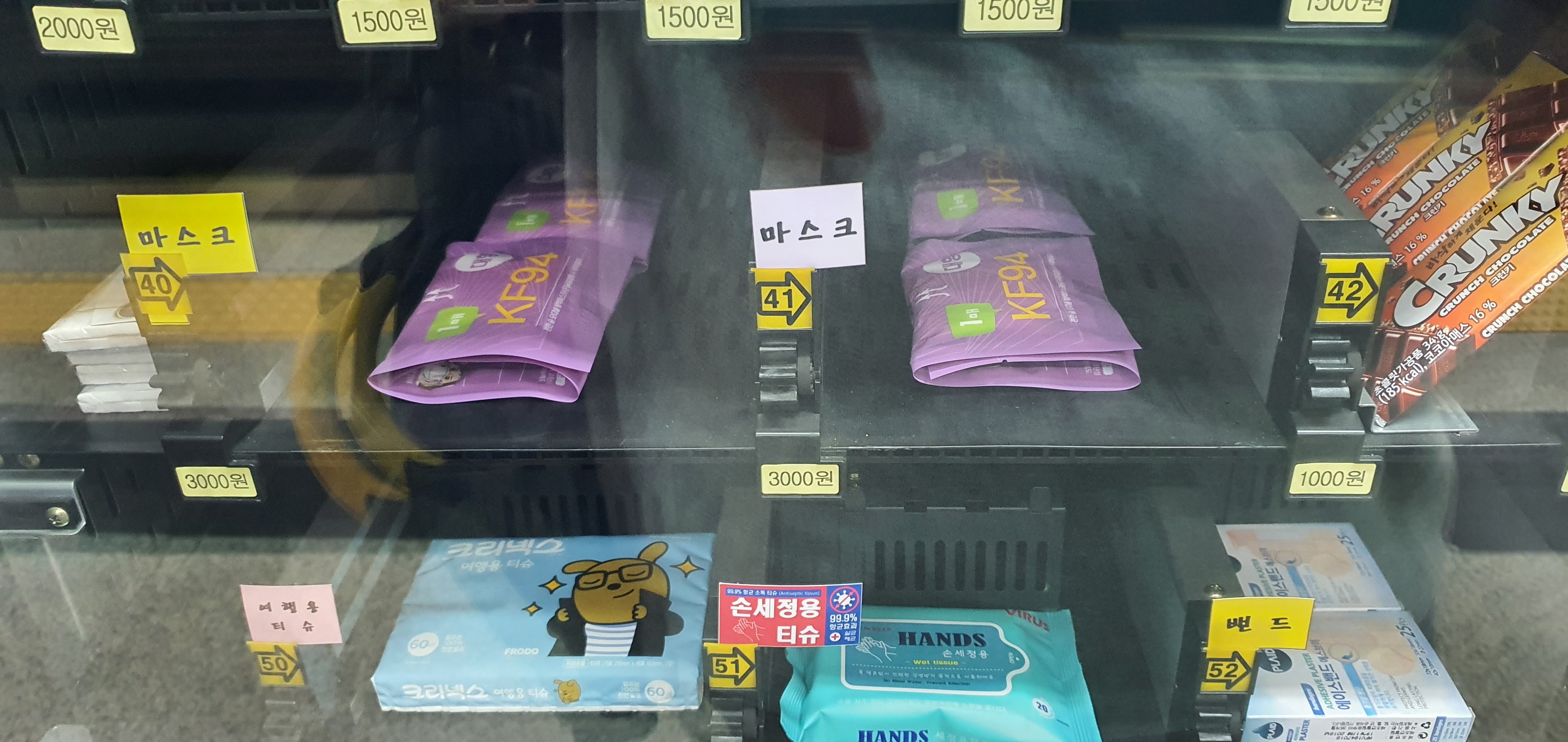 지하철 4호선 미아역 화장실 근처 자판기 KF94 마스크 한 종류가 비치되어 있다. 이외 KF80, 덴탈 마스크 등은 판매되지 않고 있다. 1매 한 장씩만 구매 가능하며 가격은 3천 원에 이른다. 공적 마스크보다 2배나 비싼 가격이다.