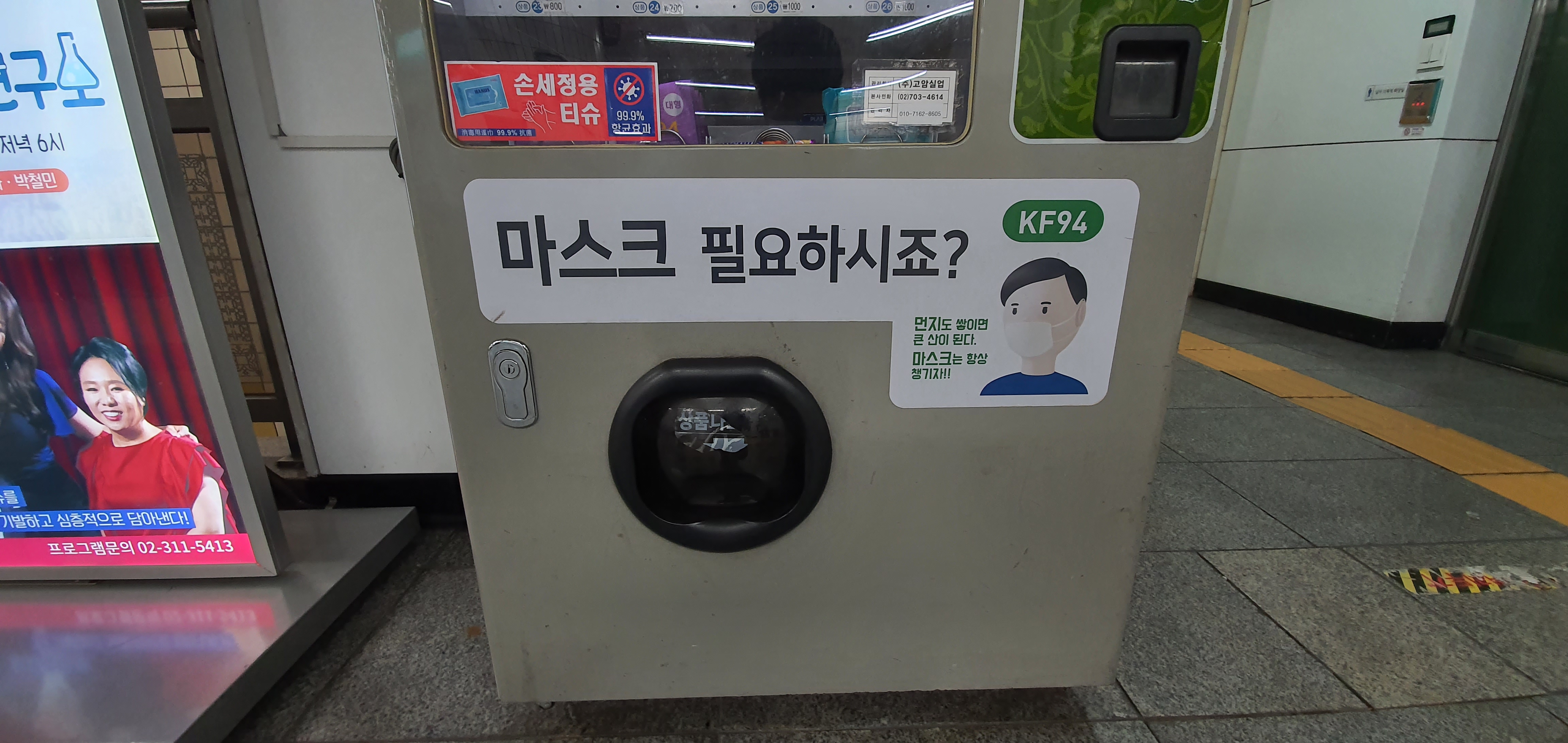 승강장 내에 비치된 스낵,음료 자판기에서도 KF94 마스크를 구매할 수 있었다. 가격은 동일했다.