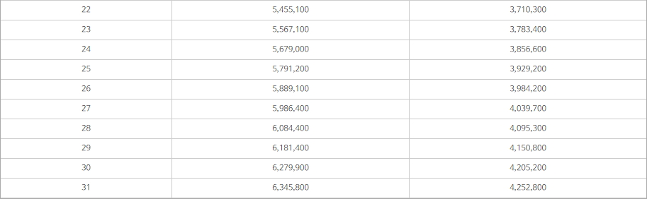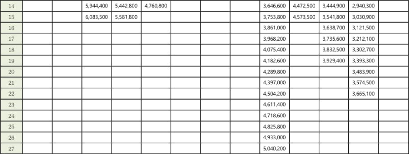 국립대학 교원 봉급표입니다. 1호봉은 2,108,700원부터 시작하고 33호봉 은 5,901,500원입니다.