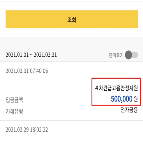 3월 31일 오전 7시경 특고 프리랜서 4차 재난지원금(긴급고용 안정자금) 지급 받았습니다. 당초 예상대로 빠르게 지급되었네요 정부정책은 잘 살펴보고 대상이 된다면 되도록 빨리 신청하는것이 좋습니다.